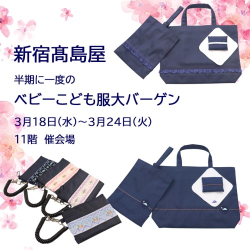 3月後半から4月上旬にかけて都内百貨店の3店舗のイベントに出店致します。 お時間がございましたら、ぜひ足をお運びください。 〇新宿高島屋 『ベビー...